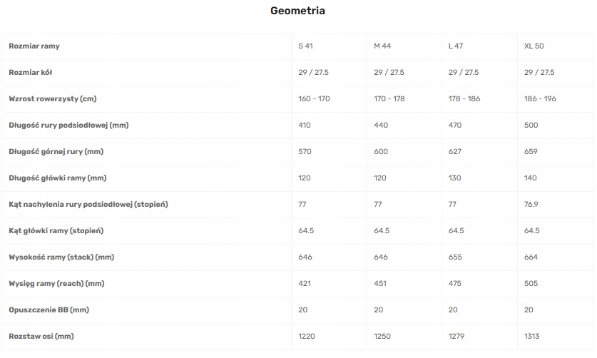 • Kąt główki ramy: 64,5°